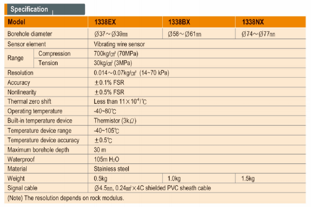 Thiết bị đo ứng suất lỗ khoan Model 1338 VW là một cảm biến để đo tự động và được thay thế cho thiết bị di động. Nó có thể được áp dụng cho các lỗ có kích thước Ø38mm EX và kích thước Ø60mm BX và kích thước Ø75mm NX và máy đo ứng suất đá lỗ khoan VW được phân loại thành hai loại cho đá cứng và đá mềm.