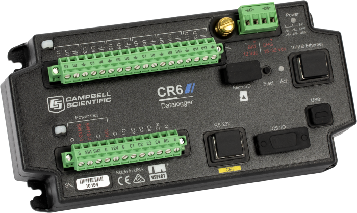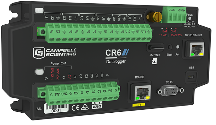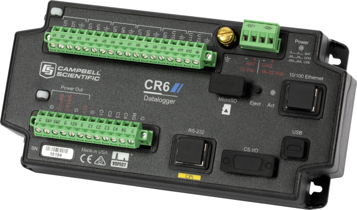 Bộ thu thập dữ liệu đo lường và điều khiển CR6 là một thành phần cốt lõi mạnh mẽ cho hệ thống thu thập dữ liệu của bạn. Bộ ghi dữ liệu CR6 cung cấp khả năng giao tiếp nhanh chóng, yêu cầu điện năng thấp, USB tích hợp, kích thước nhỏ gọn, độ chính xác và độ phân giải đầu vào tương tự cao. Nó sử dụng các thiết bị đầu cuối đa năng (U) để cho phép kết nối với hầu như bất kỳ cảm biến nào — tương tự, kỹ thuật số hoặc thông minh. Bộ ghi dữ liệu đa năng này cũng có khả năng thực hiện các phép đo dây rung tĩnh.
