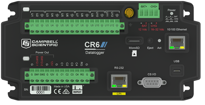 Chứa một cổng CPI tích hợp để lưu trữ các cảm biến Campbell và các mô-đun phân tán (CDM)